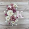Set se skládá z 9 papírových květů růže, s detaily v podobě hortenzii a malinkých kvítků. Vaši vybranou barevnou kombinaci si vyberte ve variantách produktu nebo zvolte Na přání a prosím poznamenejte zvolené barvy do poznámky k objednávce.
